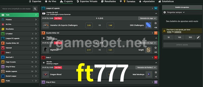 O ft777 oferece uma grande seleção de opções de apostas em e-sports com probabilidades competitivas